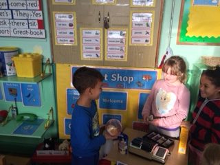 We had our very own Pet Shop in Senior Infants this month! We pretended to be pet shop keepers and customers! We learned all about animals and their young with our matching card game! We also talked about how we should take care of and mind our pets! We designed our own pet homes and some of us came up with the clever idea to build rabbit hutches with beanbags! We also talked about how vets help animals who are sick or injured. We had a lot of fun!